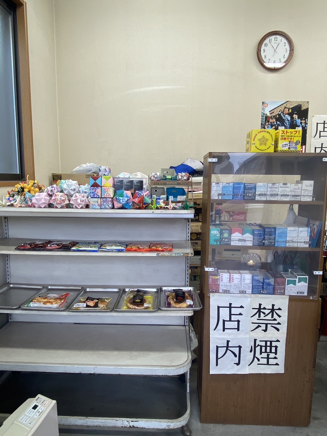 パン、ジュース、あめ、アイスクリーム、たばこ、雑誌 販売しています。